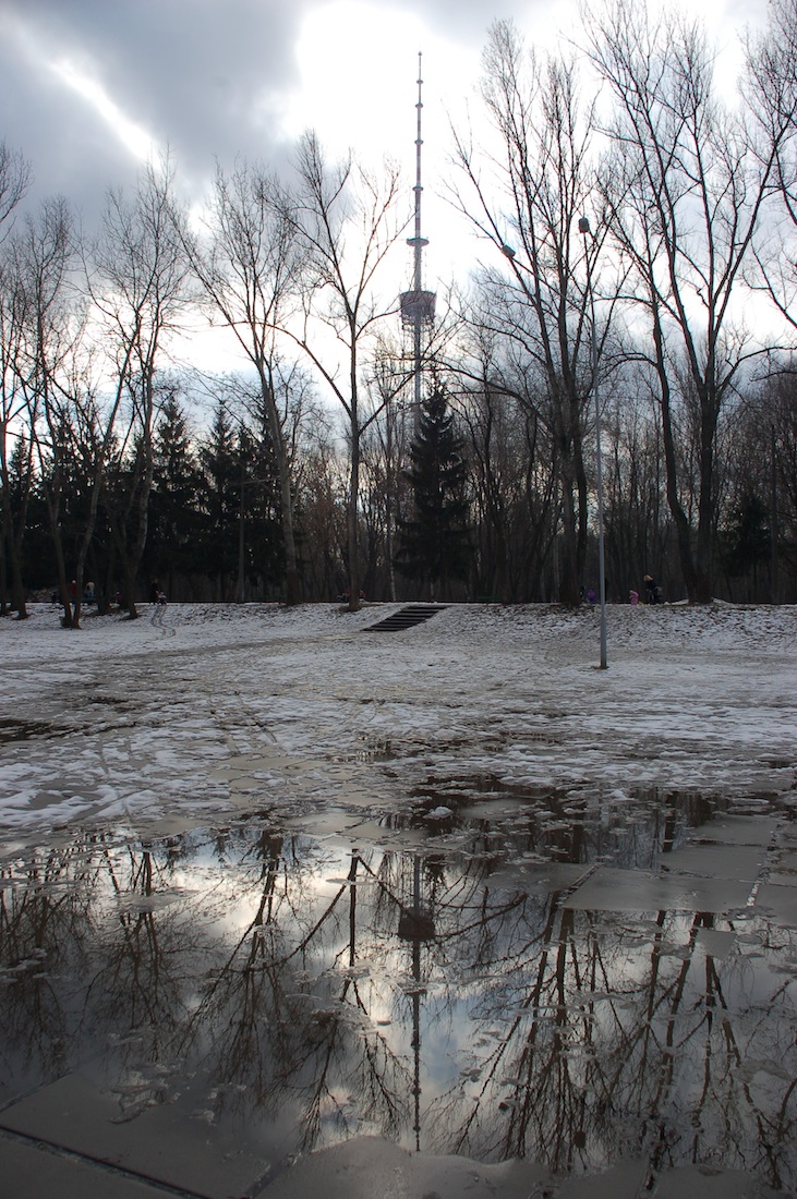 View of the TV tower from Babi Yar, Kiev. By Roland Geider (Ogre) (own work) [Public domain], via Wikimedia Commons.